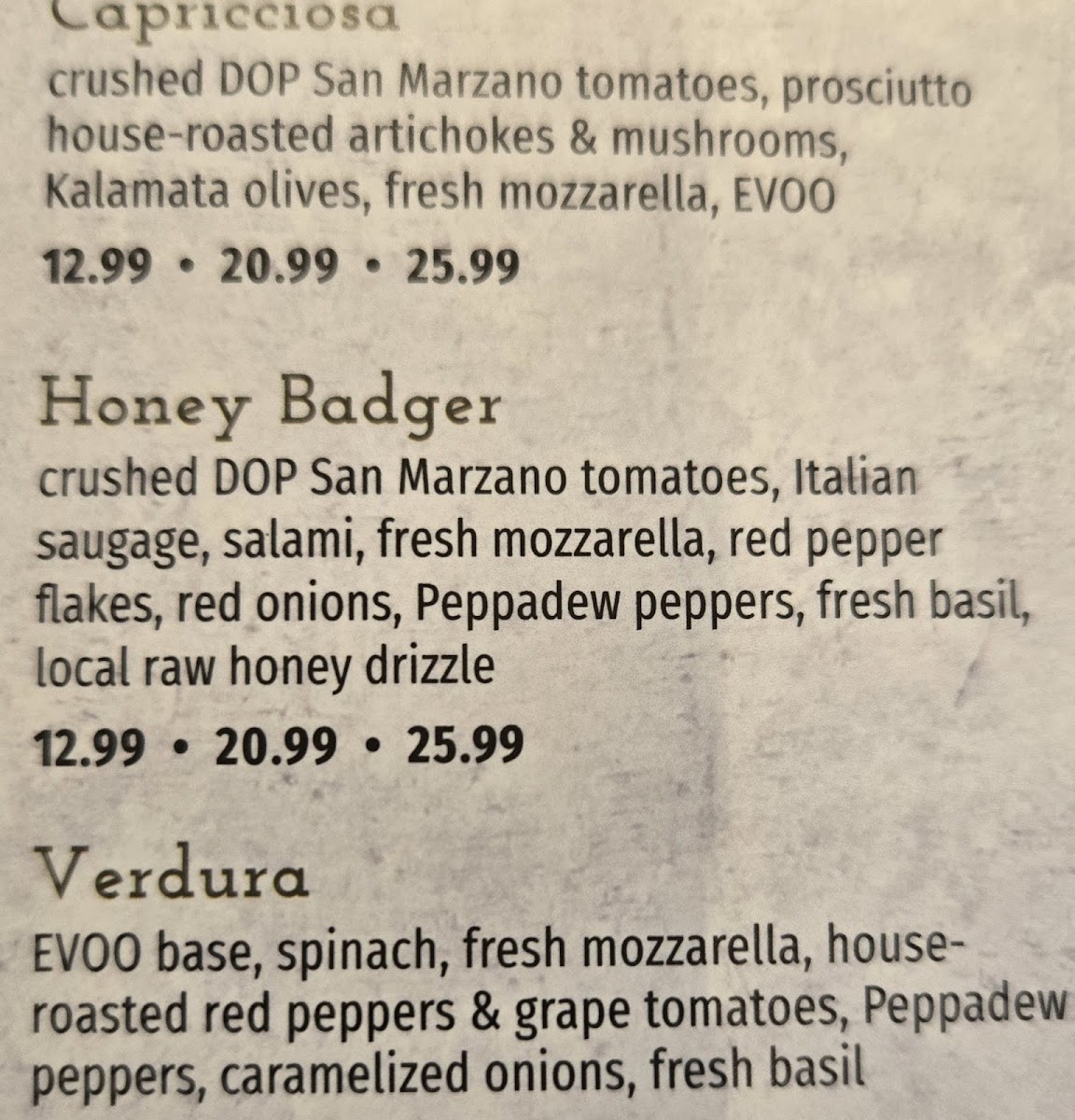Flippers Pizza SODO Menu